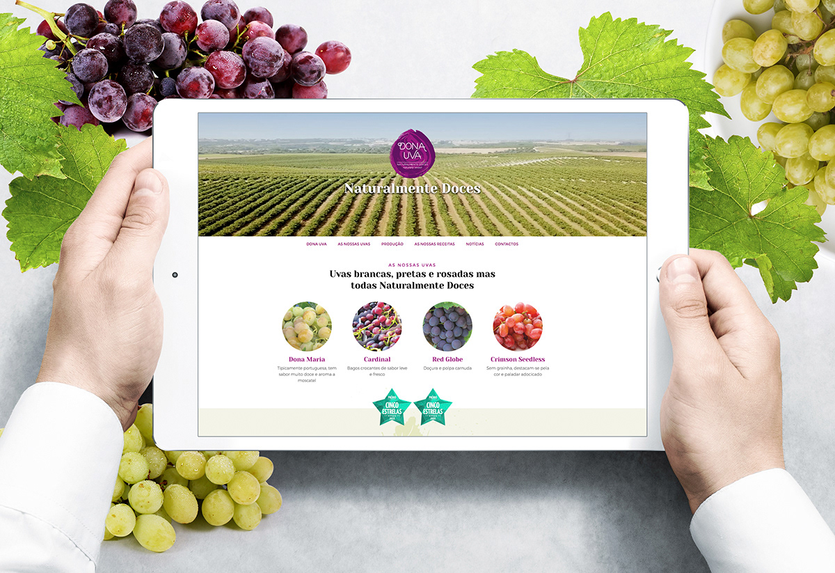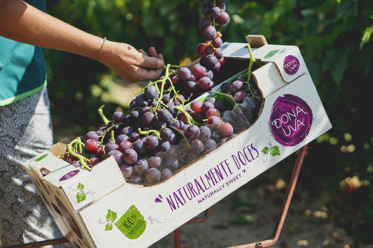 As melhores uvas de mesa de julho a novembro 100% produzidas em Portugal As uvas Dona Uva são uma marca da empresa Frutalmente. É a marca por excelência das uvas de mesa em Portugal. As uvas Dona Uva são produzidas nas regiões do Ribatejo e Oeste e a sua excelência resulta de um saber amadurecido por várias gerações de agricultores, combinando a experiência com modernas práticas agrícolas. A Agência Criativa de Marcas aceitou o desafio de criar esta marca nacional, assim como todo o packaging de comercialização deste produto. O resultado foi conseguido através da criação de uma marca impactante, criativa e natural bastante diferenciadora e de fácil reconhecimento trazendo elevada notoriedade para a marca.