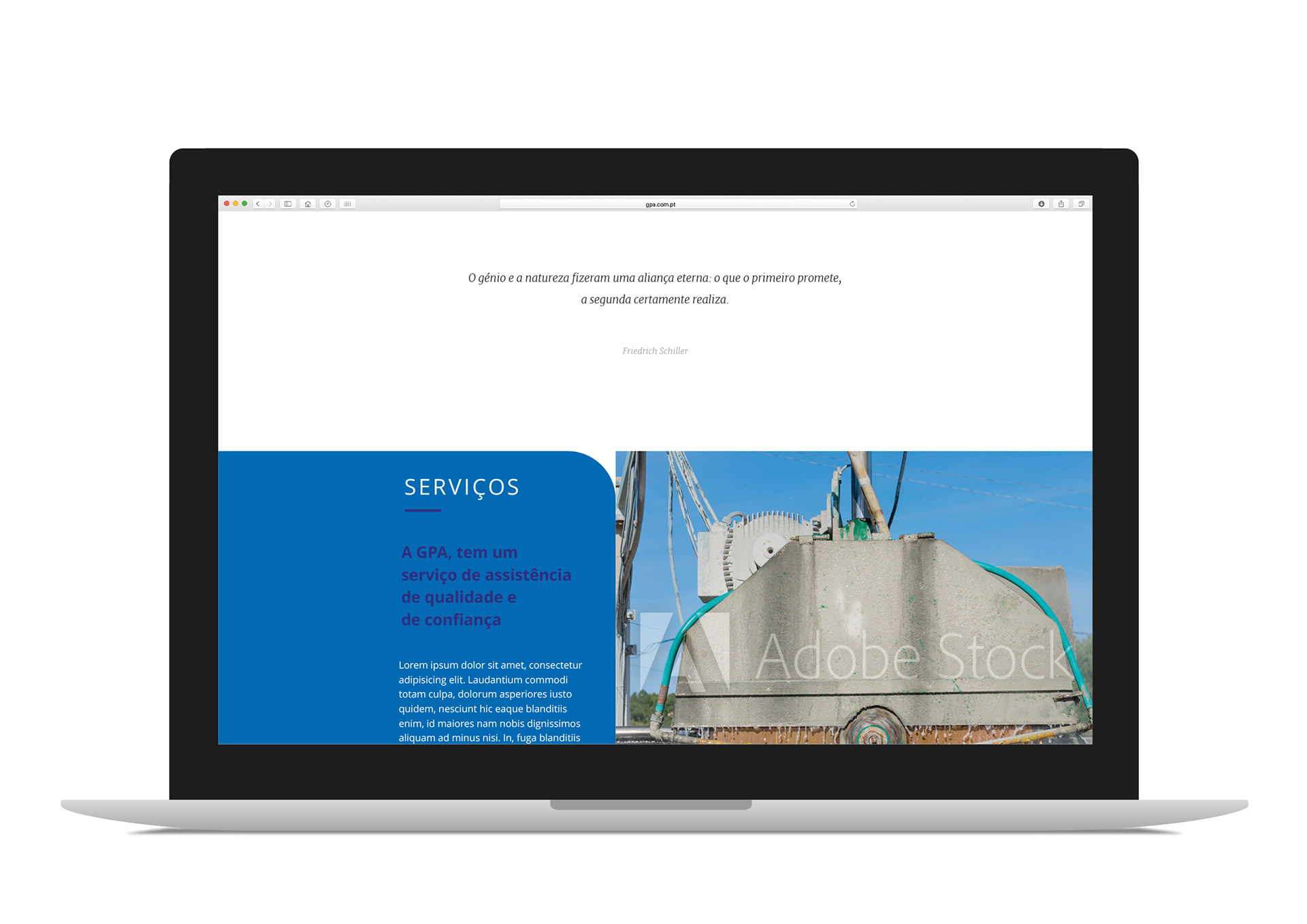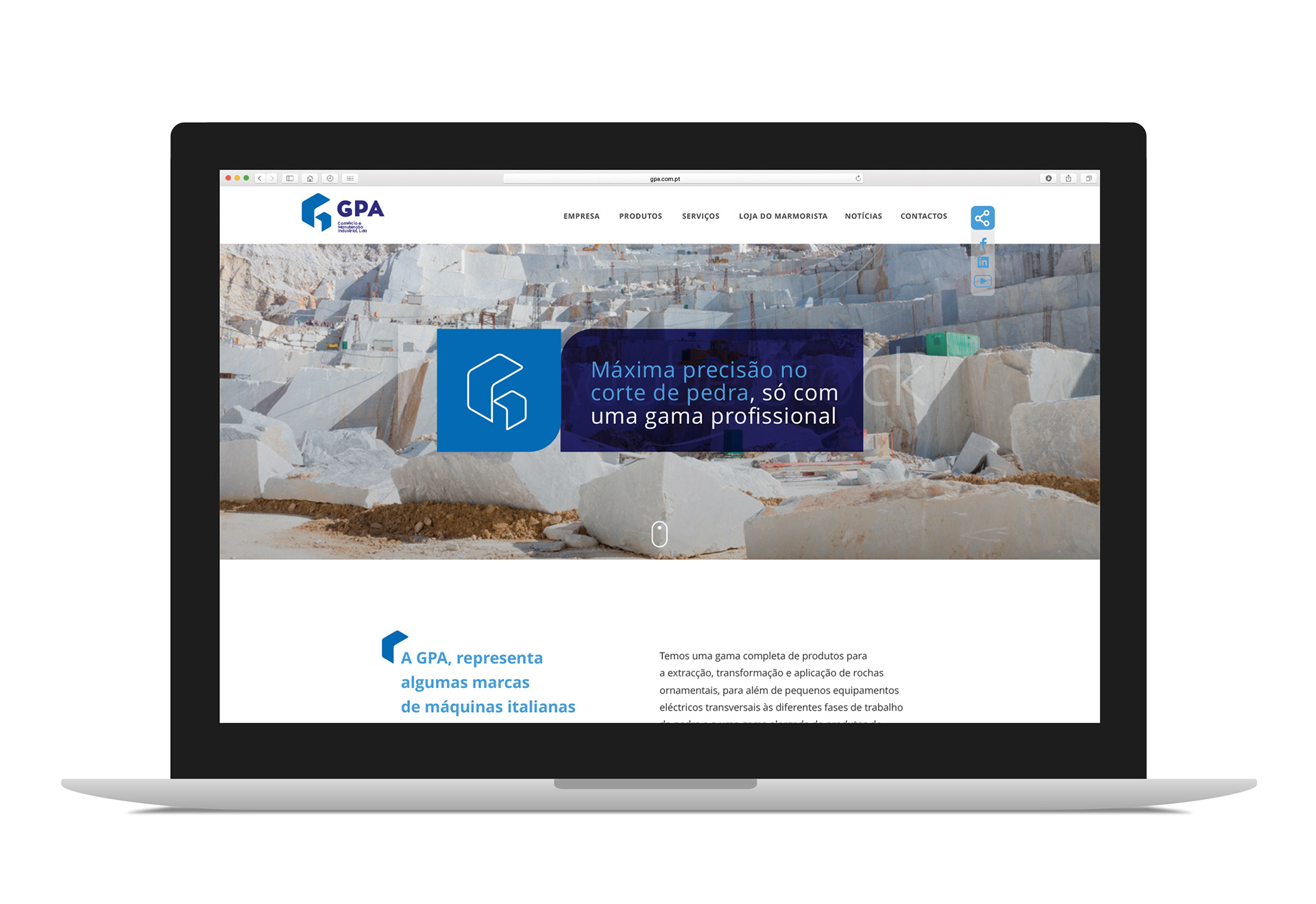 A GPA - Empresa de Comércio e Manutenção Industrial - fundada em 1991, foi criada com o objectivo de representar comercialmente algumas das melhores marcas de máquinas italianas, destinadas à transformação de rochas ornamentais. A GPA actualmente posiciona-se como uma empresa de referência nacional no seu sector, sendo inovadora nos serviços que presta. A Agência Criativa de Marcas projectou uma nova identidade gráfica, inovadora, diferenciadora e de fácil reconhecimento. Com a nova identidade iniciou-se um novo ciclo de confiança e de abertura a novos mercados, através do novo website e de outras ferramentas digitais.