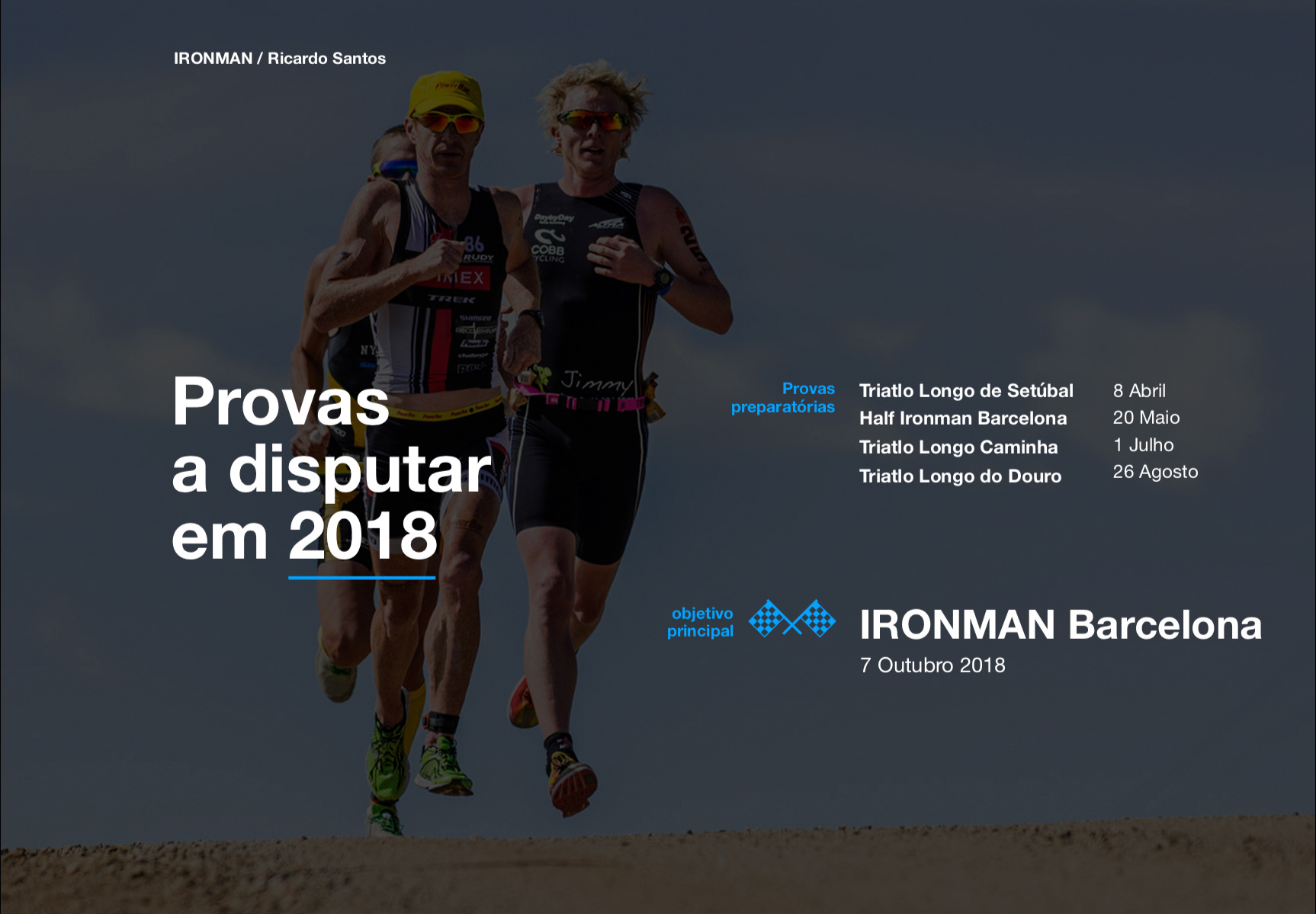 Elaboração da estratégia de comunicação e angariação de patrocínios do atleta de triatlo Ricardo Santos para a prova Ironman Barcelona. Concepção gráfica e criativa de todas as peças do caderno de promoção do atleta.