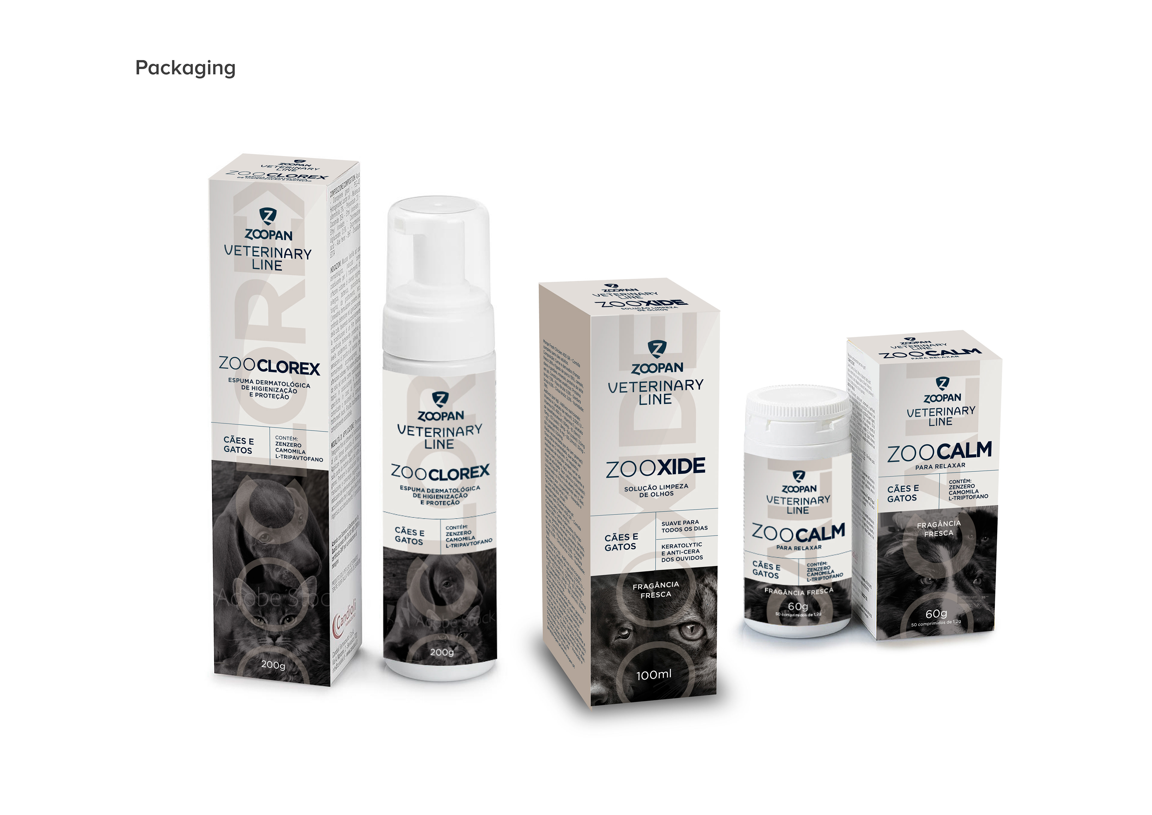 Identidade e respectivopackaging para a gama Veterinary line da Zoopan. Foi desenvolvida uma gama de exclusiva para veterinários, com uma imagem moderna, apelativa, segura e de qualidade.